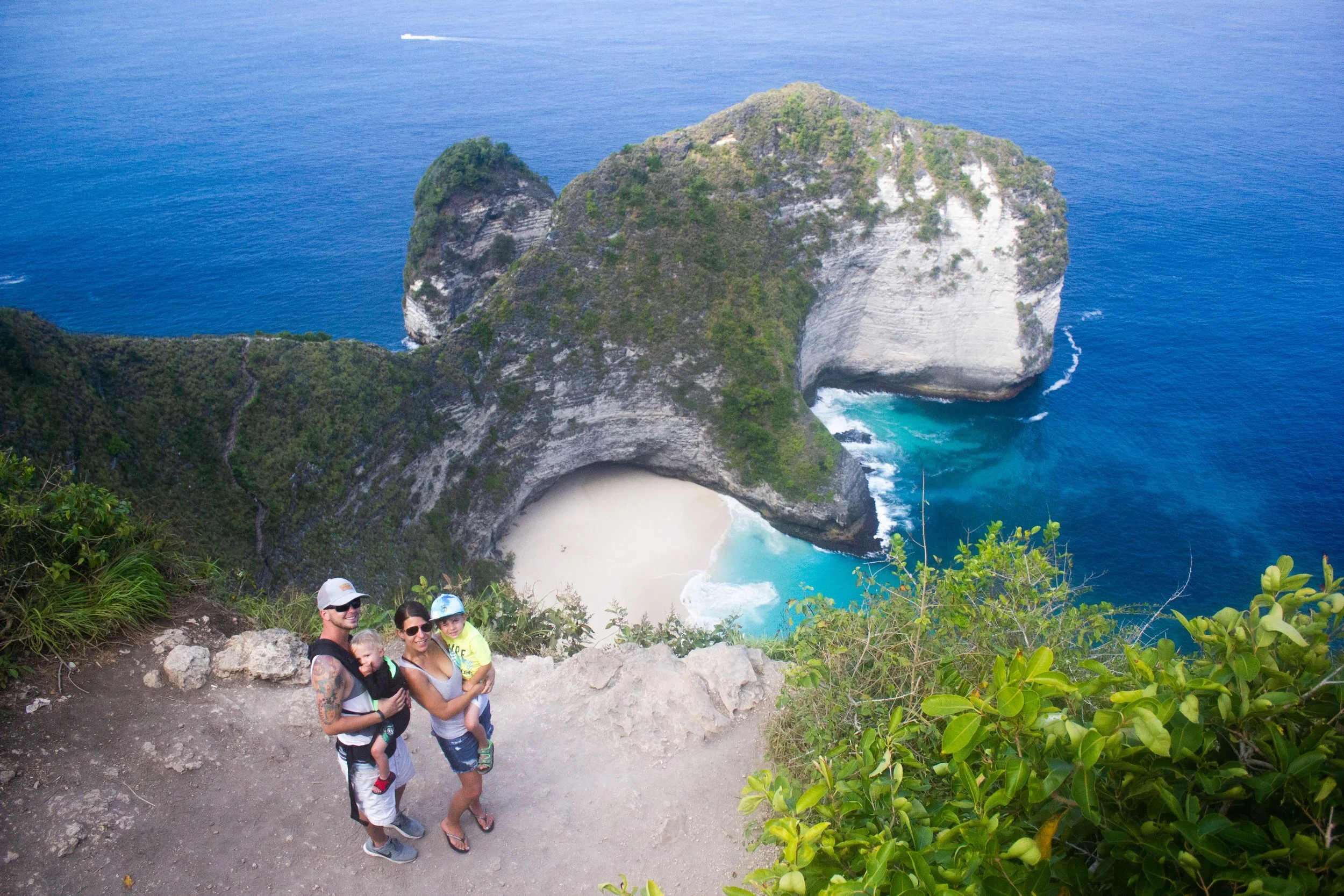 In Bali, I made my husband wade across a river, and climb down a cliff side with our 15 month old strapped to him to see the coolest waterfall, and swim in an ocean side hot spring. Totally worth all his complaining!